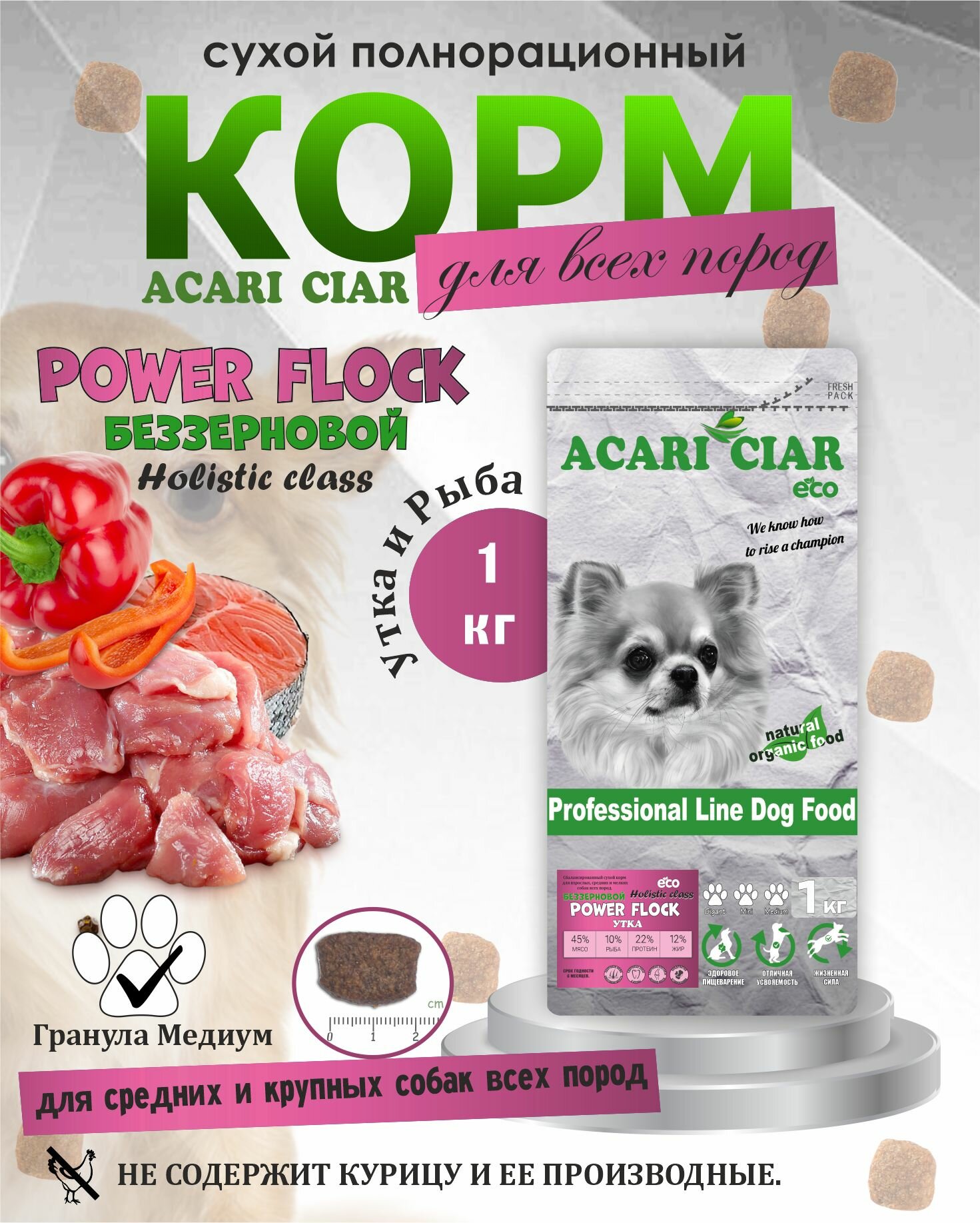 Сухой корм для собак Acari Ciar Power Flock Duck 1 кг медиум гранула: сравнение цен, характеристики, фото, актуальное наличие и цены.