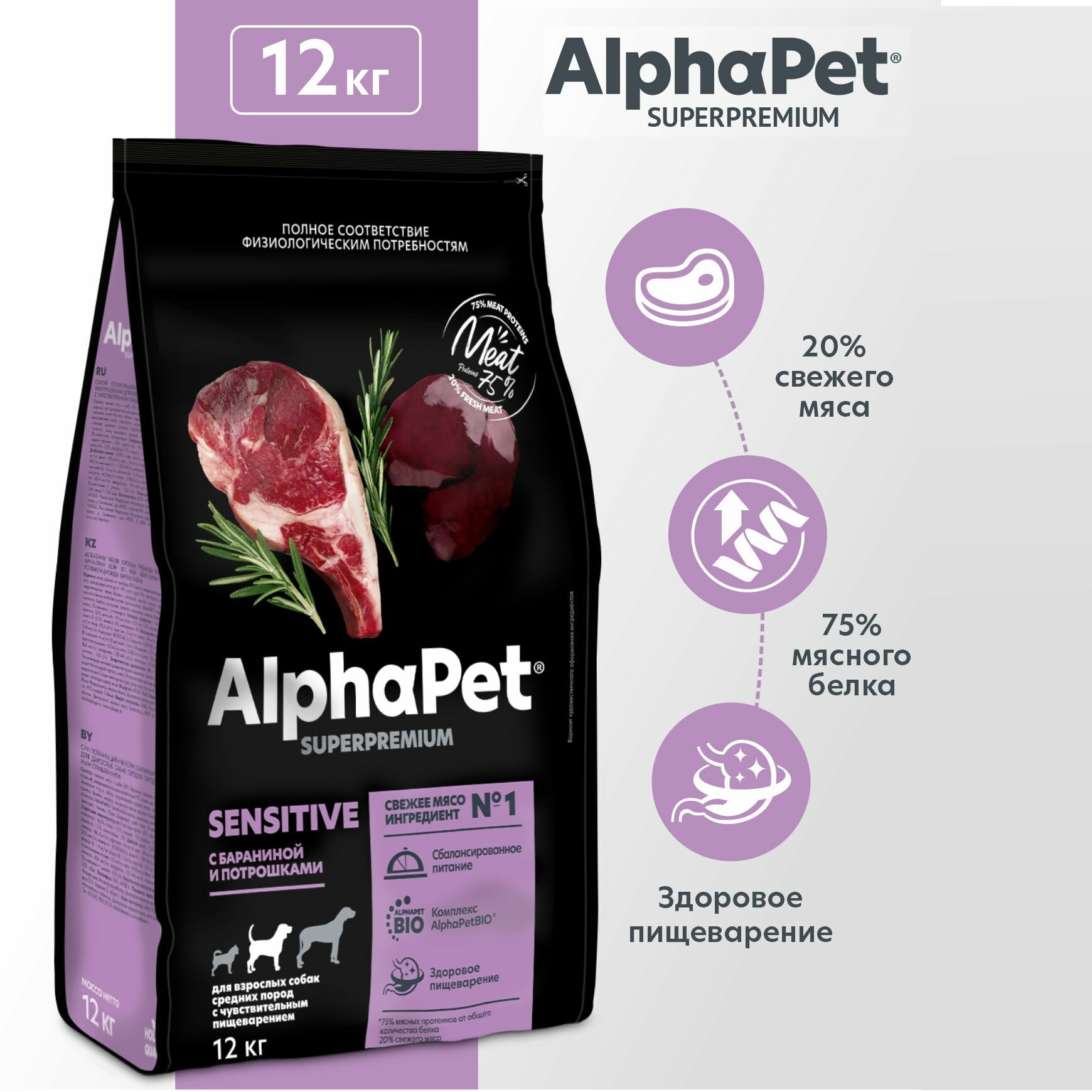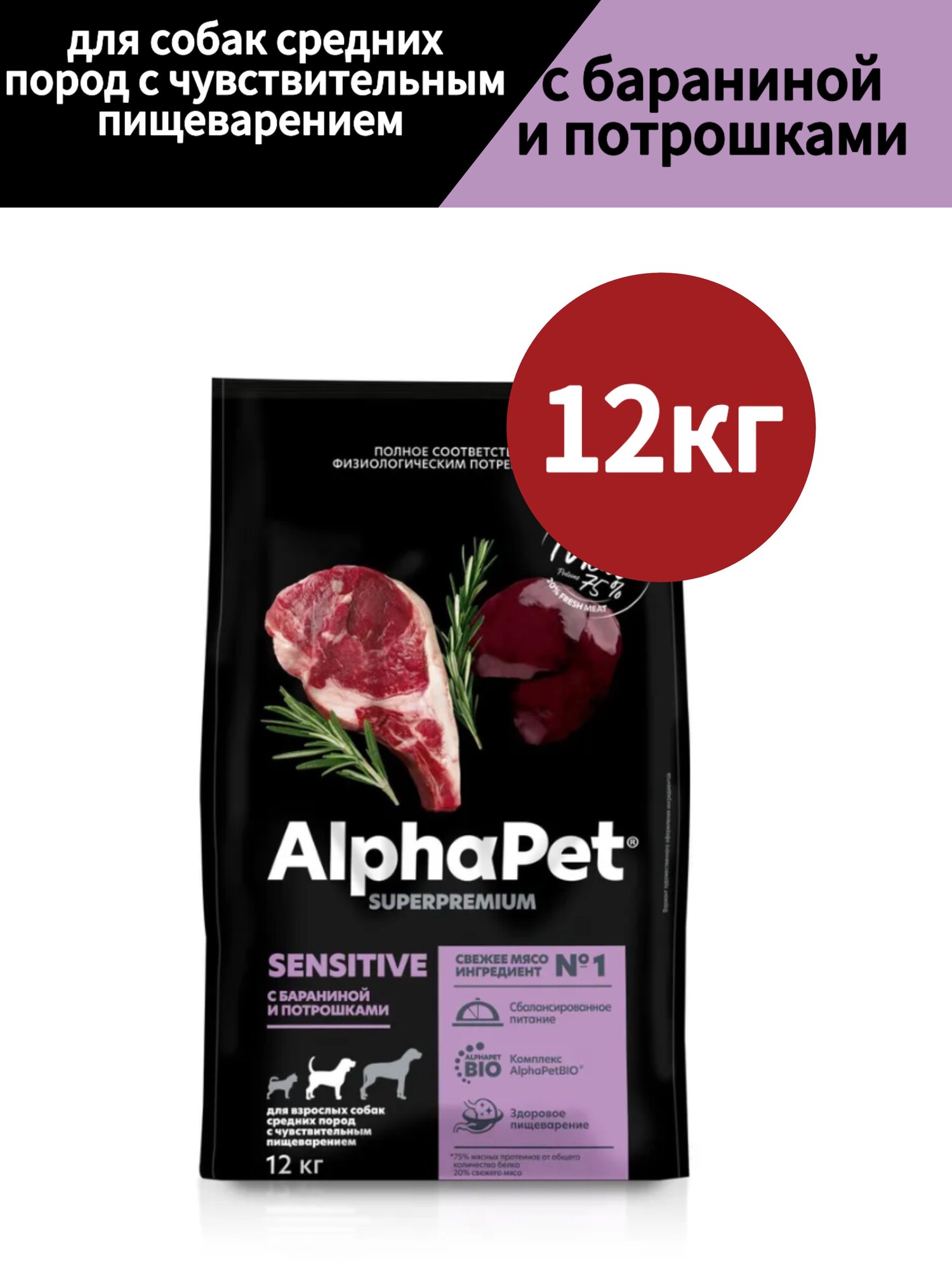 Купить Сухой корм для собак AlphaPet Superpremium, для средних пород с чувствительным пищеварением, с бараниной и потрошками, 12 кг с доставкой по всей России. Сухой корм для собак AlphaPet Superpremium, для средних пород с чувствительным пищеварением, с бараниной и потрошками, 12 кг: сравнение цен, характеристики, фото, актуальное наличие и цены.