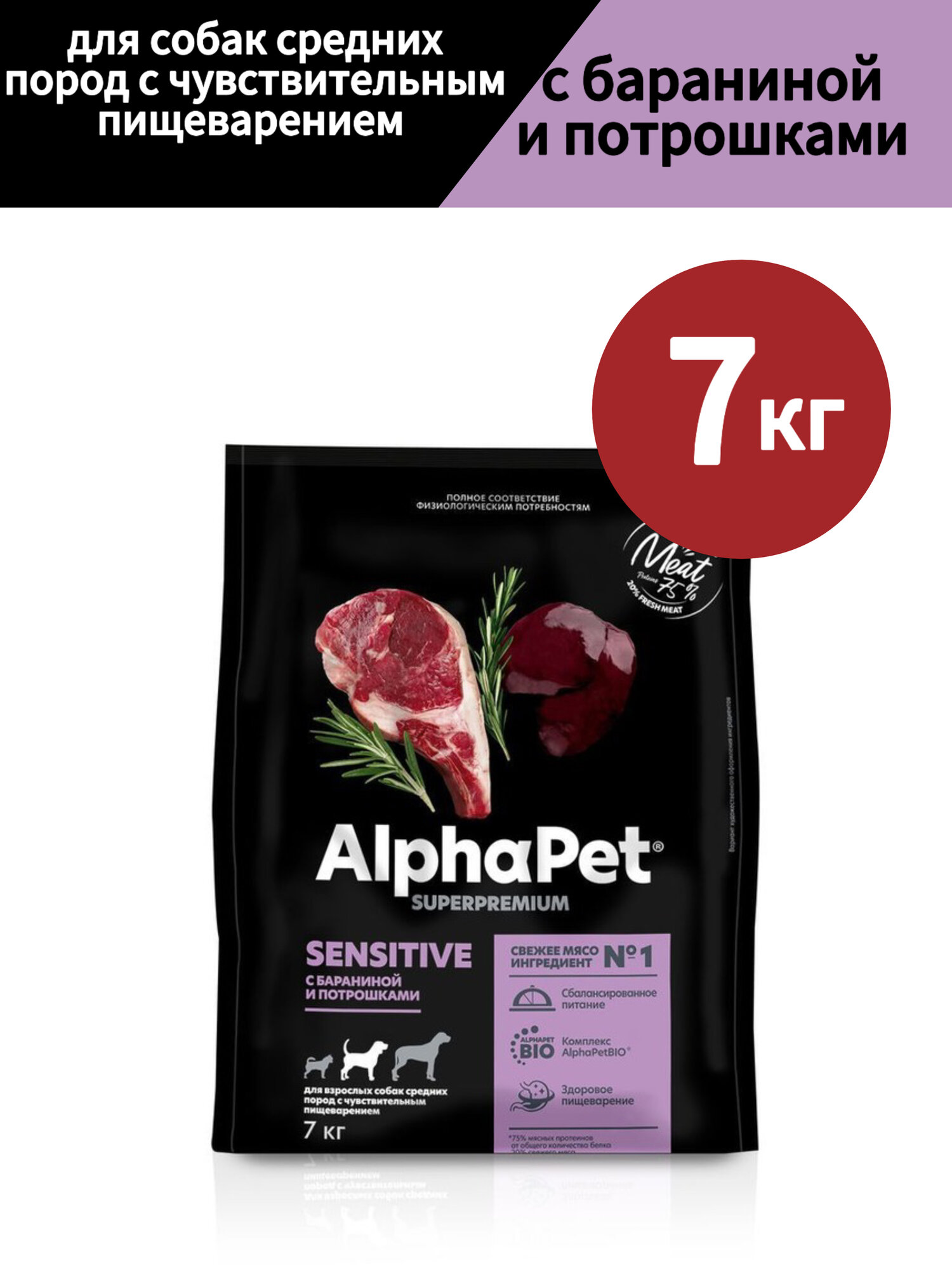 Купить Сухой корм для собак AlphaPet Superpremium, для средних пород с чувствительным пищеварением, с бараниной и потрошками 7 кг с доставкой по всей России. Сухой корм для собак AlphaPet Superpremium, для средних пород с чувствительным пищеварением, с бараниной и потрошками 7 кг: сравнение цен, характеристики, фото, актуальное наличие и цены.