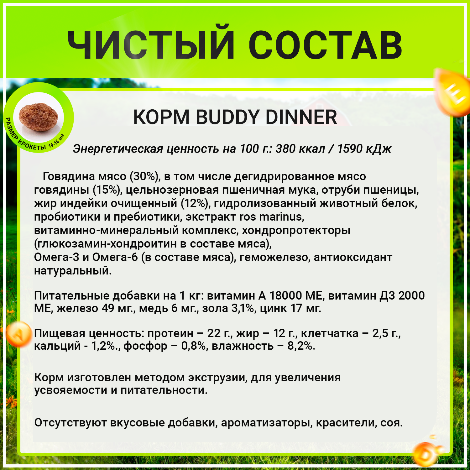 Купить Сухой корм для собак BUDDY DINNER Eco Line для всех пород собак, гипоаллергенный, полнорационный, 100% натуральный состав, с говядиной, 10 кг с доставкой по всей России.