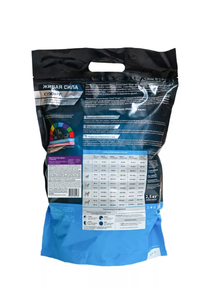 Живая сила. Спорт. Джамп, мелкая гранула Повседневный корм с ягнёнком для взрослых спортивных собак, уровень нагрузки 2 из 3