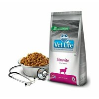 Vet Life Dog Struvite Растворение и подавление образования струвитных уролитов. Подкисление мочи. Farmina Vet Life Struvite – диетический сухой корм для собак при мочекаменной болезни для подавления образования и растворения струвитных уролитов. Контроль pH мочи. Контроль pH мочи осуществляется благодаря добавке сульфата кальция и обеспечивает условия для растворения кристаллов. Сниженное содержание магния. Сниженное содержание магния ограничивает образование струвитов. Сниженное содержание белка. Сниженное содержание белка уменьшает образование мочевины. Сниженное содержание фосфора. Сниженное содержание фосфора способствует выработке мочи ненасыщенной этими элементом и уменьшает вероятность образования струвитов. Сниженное содержание кальция. Сниженное содержание кальция способствует выработке мочи ненасыщенной этим элементом и уменьшает вероятность образования уролитов. Все продукты Farmina разработаны специалистами и протестированы на собаках и кошках в домашних условиях содержания. Механизм действия: Введение в рецептуру сульфата кальция создает и поддерживает оптимальный рН мочи для подавления образования и растворения струвитов, и создает неблагоприятные условия для бактериальной пролиферации. Низкая концентрация белков, кальция, фосфора и магния создает неблагоприятную ситуацию для агрегации и кристаллизации осадков. Рекомендации по применению: Использовать по назначению ветеринарного врача. Рекомендованные курсы лечения: от 5 до 12 недель для растворения струвитов и до 6 месяцев для профилактики рецидивов. Суточное количество корма указано в таблице и может меняться в зависимости от породы, условий содержания, физических нагрузок и стадии заболевания. Ингредиенты: рис, дегидратированное куриное мясо, животные жиры, картофель, овес, дегидратированные цельные яйца, льняное семя, гидролизат белков животного происхождения, рыбий жир, хлорид калия, сульфат кальция дигидрат, карбонат кальция, растительное масло, натрия хлорид. Источник белка: дегидратированное куриное мясо, дегидратированные цельные яйца. Подкислитель мочи: сульфат кальция дигидрат (5 г/кг). Дневная норма может быть разделена на два и более кормлений. Собака должна иметь свободный доступ к свежей питьевой воде. Пищевые добавки на 1кг: Витамин А – 15000 МЕ, Витамин D3 – 600 МЕ, Витамин Е – 600 мг, Витамин С – 150 мг, Ниацин – 38 мг, Пантотеновая кислота – 15 мг, Витамин В2 — 7,5 мг, Витамин В6 – 6 мг, Витамин В1 — 4,5 мг, Витамин Н — 0,4 мг, Фолиевая кислота — 0,45 мг, Витамин В12 — 0,06 мг, Холина хлорид – 2000 мг, Бета-каротин — 1,5 мг, Хелат цинка аналогичный метионин гидроксилазе – 970 мг, Хелат марганца аналогичный метионин гидроксилазе – 400 мг, Хелат железа гидрата глицина – 185 мг, Хелат меди аналогичный метионин гидроксилазе – 45 мг, Селенометионин – 68 мг, Йодат кальция безводный — 2,4 мг, DL-метионин – 3300 мг, Таурин – 1000 мг, L-карнитин – 250 мг. Специальные добавки: микрокристаллическая целлюлоза; кальция сульфат дигидрат – 5 г. Антиоксиданты: экстракт токоферолов натурального происхождения — 10 мг. Питательные вещества: сырой белок — 19,50%, сырой жир — 19,00%, сырая клетчатка — 1,30%, сырая зола — 5,40%, кальций — 0,80%, фосфор — 0,50%, натрий — 0,25%, калий — 0,60%, магний — 0,06%, хлориды — 0,60%, сера — 0,55%, Омега-3 — 0,35%, Омега-6 — 2,70%, эйкозапентаеновая кислота (EPA) – 0,10%, докозагексаеновая кислота (DHA) — 0,15%. Энер