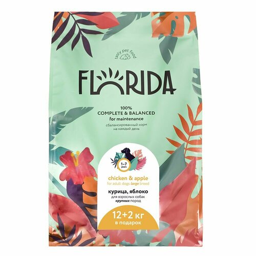 Florida Chicken and Apple - сухой корм супер-премиум-класса с курицей и яблоком взрослых собак крупных пород. Сбалансированное полнорационное питание, способствующее правильному функционированию всего организма и нормализации пищевых процессов. В рационе кормов Florida используется только белок животного происхождения. Преимущества корма натуральные антиоксиданты