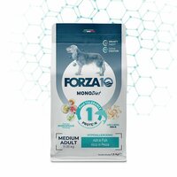 FORZA10 Medium Diet из рыбы ; это монопротеиновый корм для собак, разработанная компанией SANYpet для собак средних пород с пищевой непереносимостью на мясо животных интенсивного животноводства. Идеальное соотношение Омега-3 и Oмега-6, которых критически не хватает в традиционных кормах для животных. Клинически доказано, что риск возникновения аллергических реакций и пищевой непереносимости у большинства животных значительно снижен, если их рацион составлен из продуктов, полученных из неинтенсивного животноводства. Показания: для чувствительных собак среднего размера с пищевой непереносимостью на мясо из интенсивного животноводства. Для сокращения пищевой аллергии и непереносимости на ингредиенты и питательные вещества кормов. Рекомендации по применению: от 3 до 8 недель. Если симптомы непереносимости вновь проявляются при переходе на другие корма, то данный корм можно использовать на протяжении всего периода роста Вашего питомца. Перед применением или при продлении периода применения рекомендуется консультация ветеринарного врача. Ингредиенты: рыбная мука 23%, рис 16%, гороховый протеин, гороховый крахмал, масла и жиры (рыбий жир 3%), пульпа свеклы, пивные дрожжи, минеральные вещества, дегидратированные дрожжи (Био МОС), ФОС, Мейтаке (Grifola frondosa) 0.027%, Юкка Шидигера, продукты и субпродукты свежих фруктов и овощей (Папайя (Carica papaya) 0.025%), продукты, полученные в результате переработки растений (Ананас (Ananas spp 0.025%), продукты, полученные в результате переработки растений (Алоэ вера (Aloe vera) 0.013%), водоросли (Haematococcus pluvialis (aстаксантин 0.005%)). Добавки: витамин А 17500 ме/кг, витамин Е 280 мг, хлорид холина 1000 мг/кг, DL-метионин 500 мг/кг, моногидратный сульфат цинка 137 мг/кг, хелат меди в гидрате глицина 39 мг/кг. Технологические добавки: богатый токоферолом экстракт натурального происхождения 26 мг/кг, Натуральные растительные добавки: Гранат обыкновенный (Punica granatum) 150 мг/кг, Женьшень (Panax ginseng) 50 мг/кг, Розмарин лекарственный (Rosmarinus officinalis) 0,5 мг/кг. Содержание питательных веществ: влажность 8,0%, сырой белок 26,0%, сырые жиры и масла 13,0%, сырая клетчатка 2,5%, сырая зола 7,5%, кальций 1,5%, фосфор 1,0%, Омега-3 0,8%, Oмега-6 2,4%. Энергетическая ценность: 3520 ккал/кг 14.7 МДж/кг. Лекарственные растения: Красные водоросли (Haematococcus pluvialis): содержат астаксантин, пигмент с сильными антиоксидантным и иммуномодулирующим действиями. Майтаке (Grifola frondosa): это съедобный гриб, растущий в северных регионах Японии и восточных регионах Северной Америки. Высокое содержание бетаглюканов обеспечивает прекрасное воздействие на иммунную систему. Алоэ (Aloe vera): благодаря высокому содержанию активных веществ обладает успокаивающим, иммуностимулирующим и очищающим свойствами. Гранат (Punica granatum): насыщен полифенолами, которые противостоят окислению липидов и вредному воздействию свободных радикалов, в нём содержатся незаменимые жирные кислоты, олеиновая и линолевая, которы