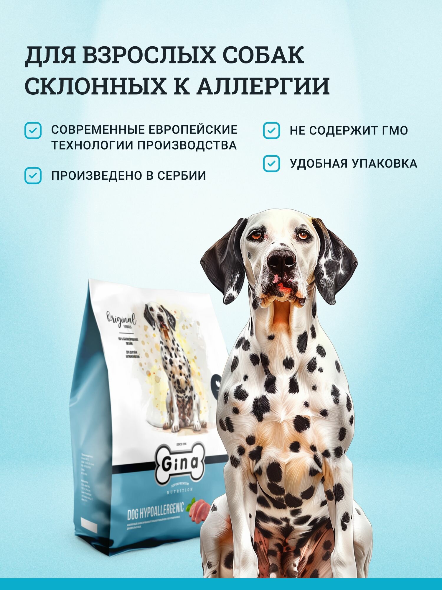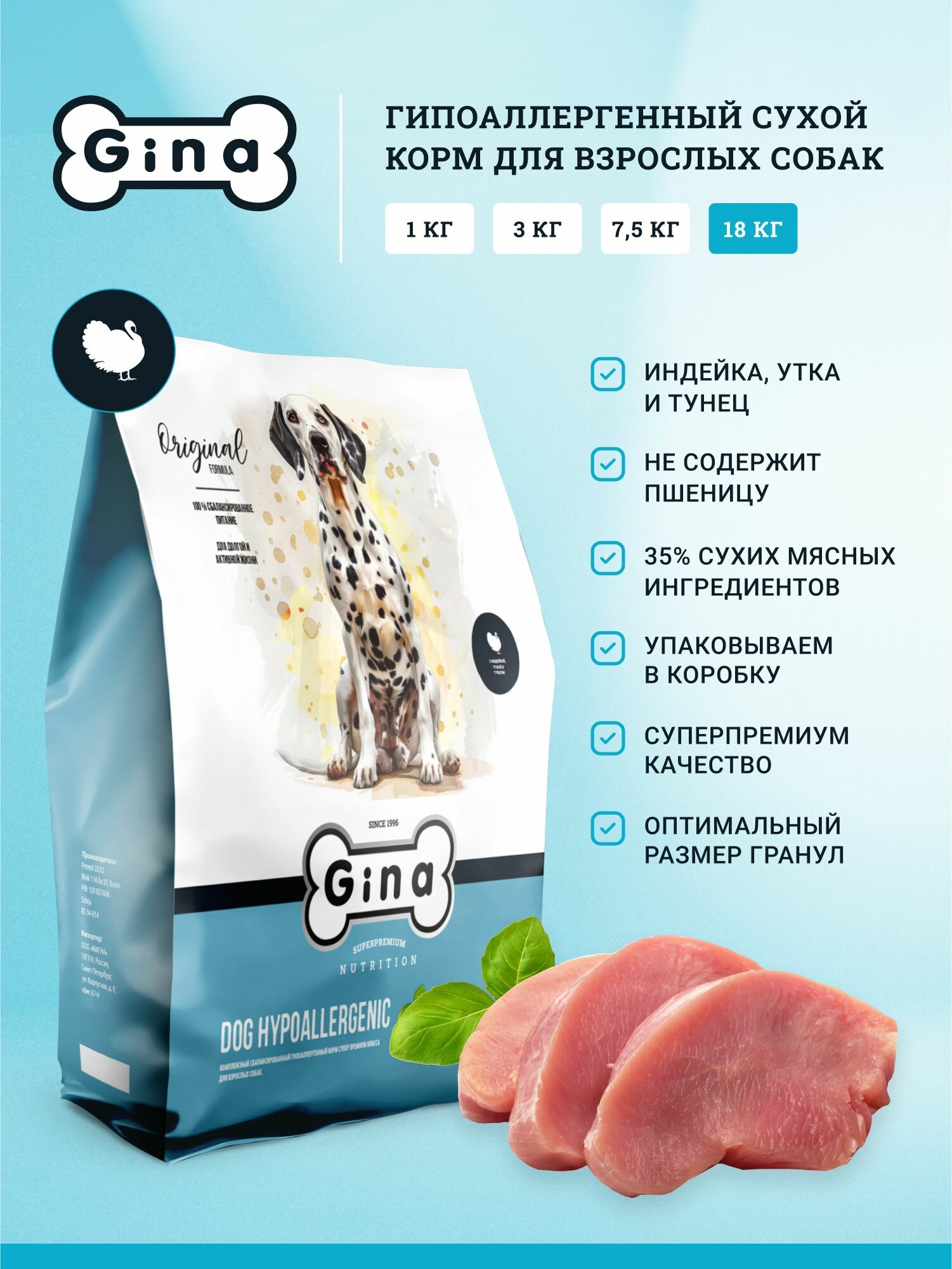 Купить Сухой корм для собак Gina с индейкой, уткой и тунцом, супер премиум, гипоаллергенный, 18кг, Dog Hypoallergenic с доставкой по всей России. Сухой корм для собак Gina с индейкой, уткой и тунцом, супер премиум, гипоаллергенный, 18кг, Dog Hypoallergenic: сравнение цен, характеристики, фото, актуальное наличие и цены.