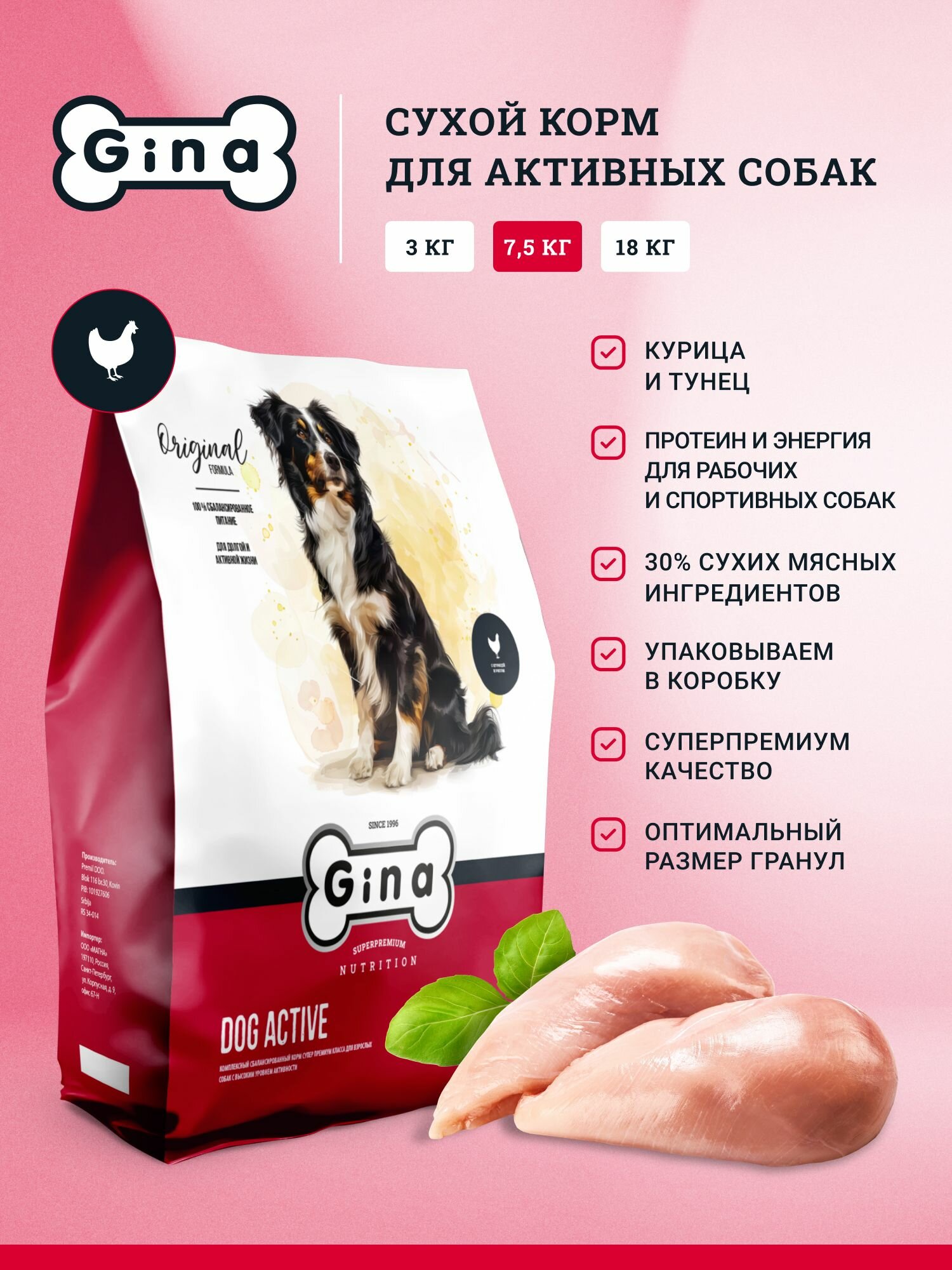 Сухой корм для собак Gina с курицей и тунцом, супер премиум, для активных и выставочных, 7,5кг, Dog Active: сравнение цен, характеристики, фото, актуальное наличие и цены.