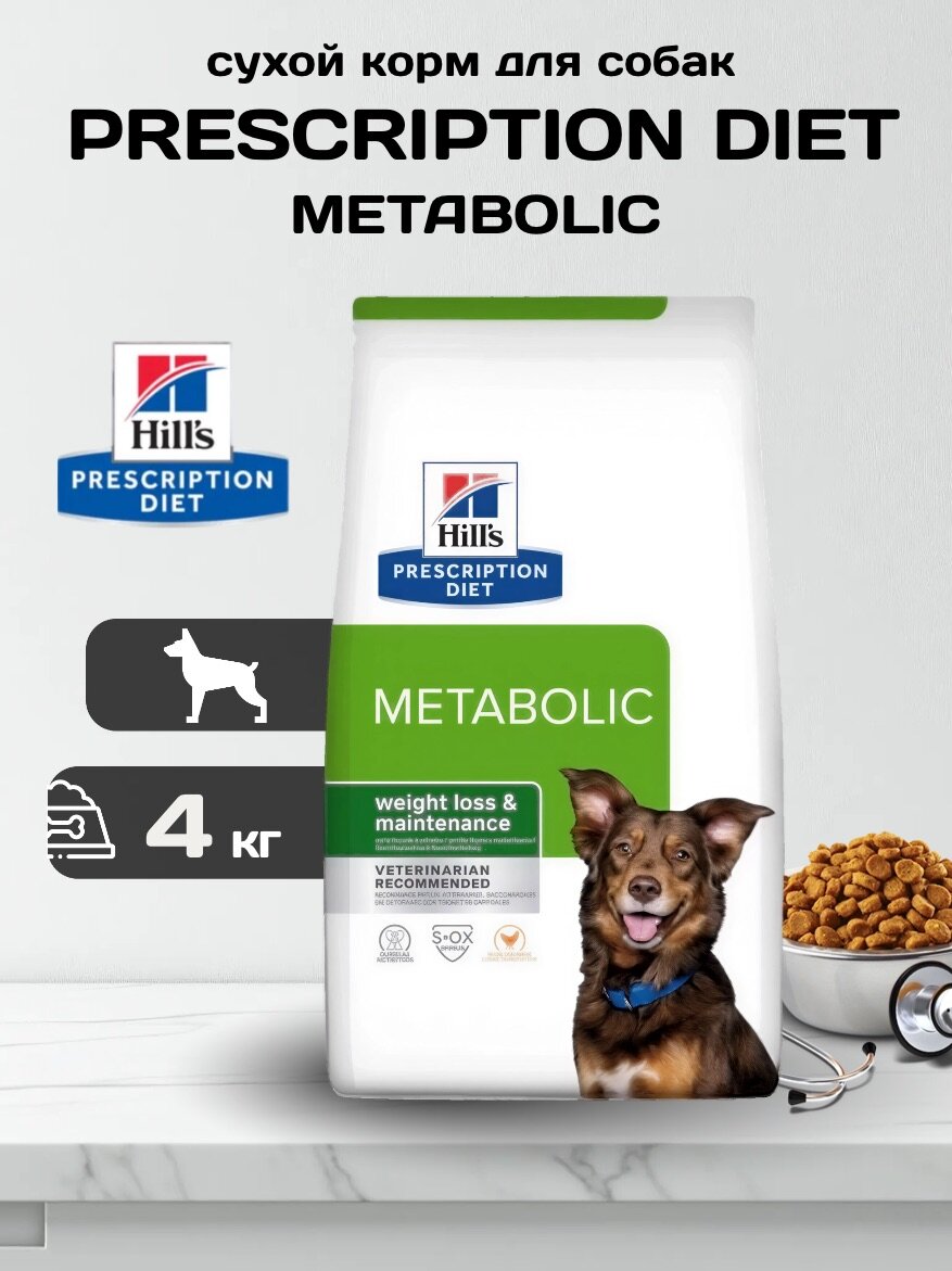Сухой корм для собак Hill’s Prescription Diet Metabolic при ожирении и для контроля веса (Курица) — 4 кг: сравнение цен, характеристики, фото, актуальное наличие и цены.