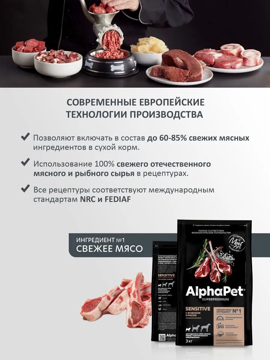 Купить Сухой корм с ягненком и рисом для собак мелких пород с чувствительным пищеварением AlphaPet Superpremium, 3 кг с доставкой по всей России. Сухой корм с ягненком и рисом для собак мелких пород с чувствительным пищеварением AlphaPet Superpremium, 3 кг: сравнение цен, характеристики, фото, актуальное наличие и цены.