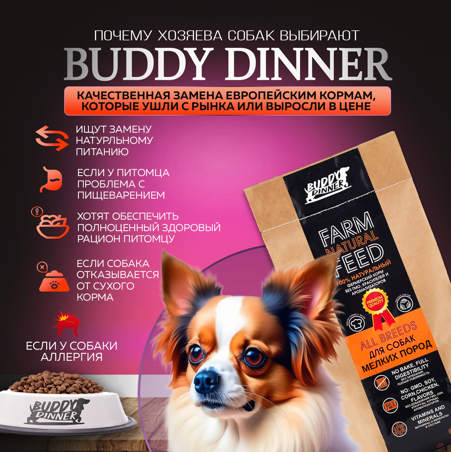 Сухой корм для собак мелких пород Buddy Dinner Orange Line Hypoallergenic с лососем 15 кг: сравнение цен, характеристики, фото, актуальное наличие и цены.