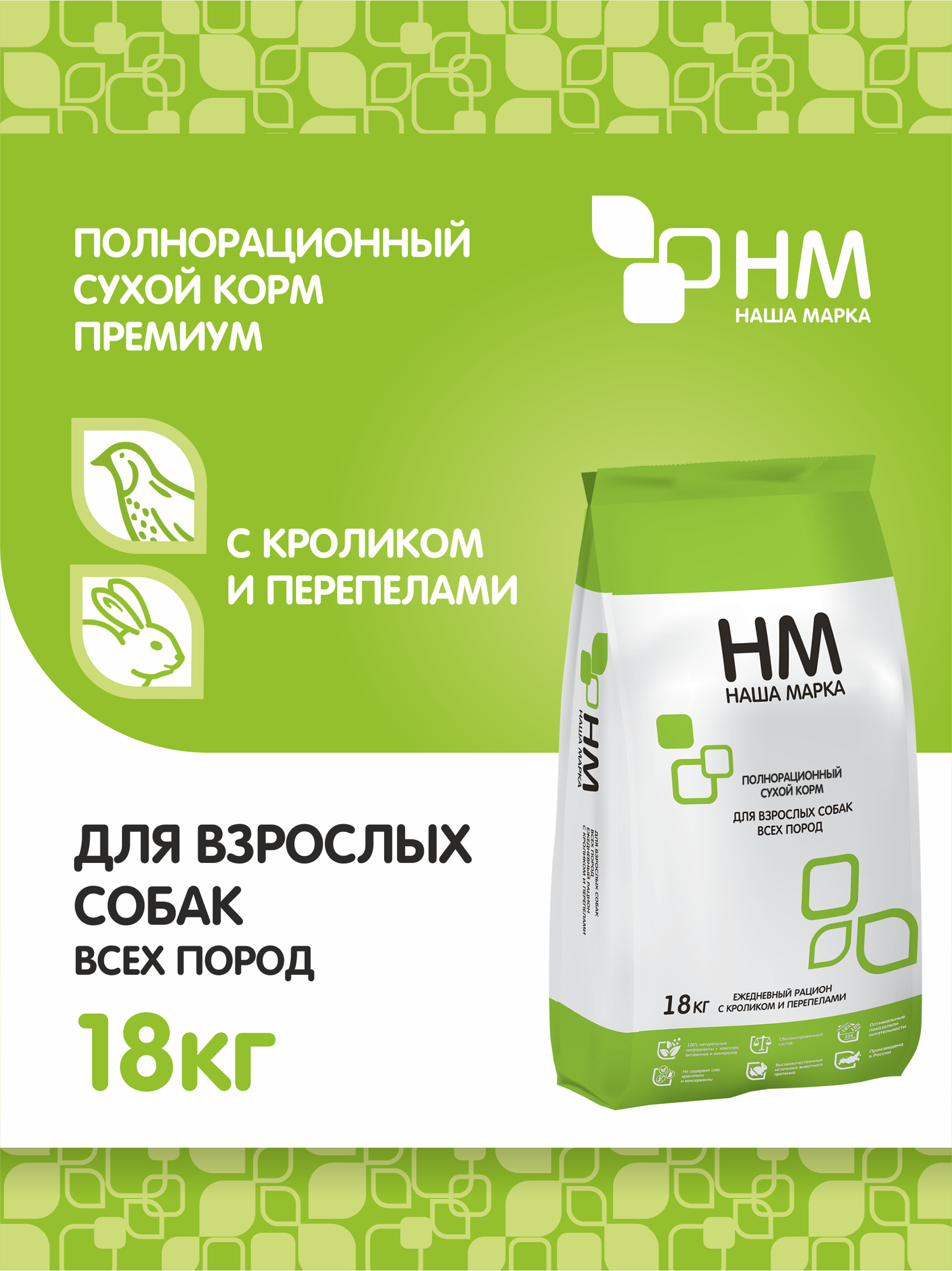 Корм сухой Наша Марка кролик и перепелка для взрослых собак всех пород (18 кг): сравнение цен, характеристики, фото, актуальное наличие и цены.