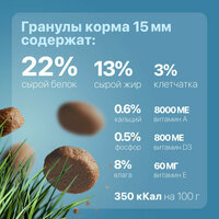 Сырой протеин (белок) от 22% Сырой жир от 13 % Сырая клетчатка до 3% Кальций от 0,6% Фосфор от 0,5% Влажность до 8% Обменная энергия 350 ккал/100 г