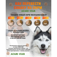 Продукция ACARI CIAR - это натуральное и здоровое питание для четвероногих любимцев! Корма Акари Киар - созданы благодаря рекомендациям и советам ведущих ветеринарных врачей, кинологов и заводчиков России. В результате создан 100% натуральный, идеально сбалансированный, полнорационный корм для домашних животных.