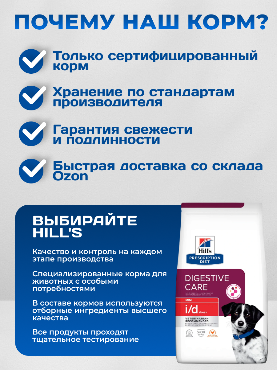 Сухой корм для собак с курицей Hill’s Prescription Diet i/d Stress Mini, 1 кг: сравнение цен, характеристики, фото, актуальное наличие и цены.