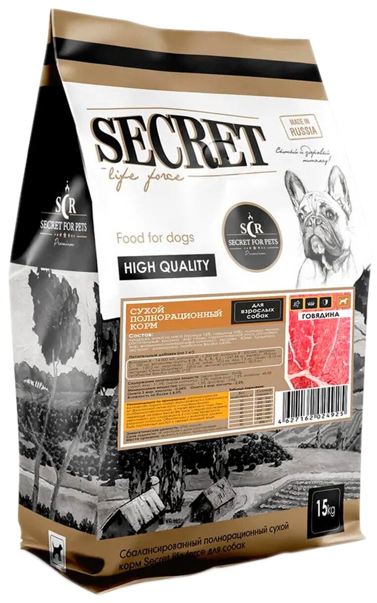 Корм Secret life force (Секрет Премиум) для собак всех пород с говядиной.