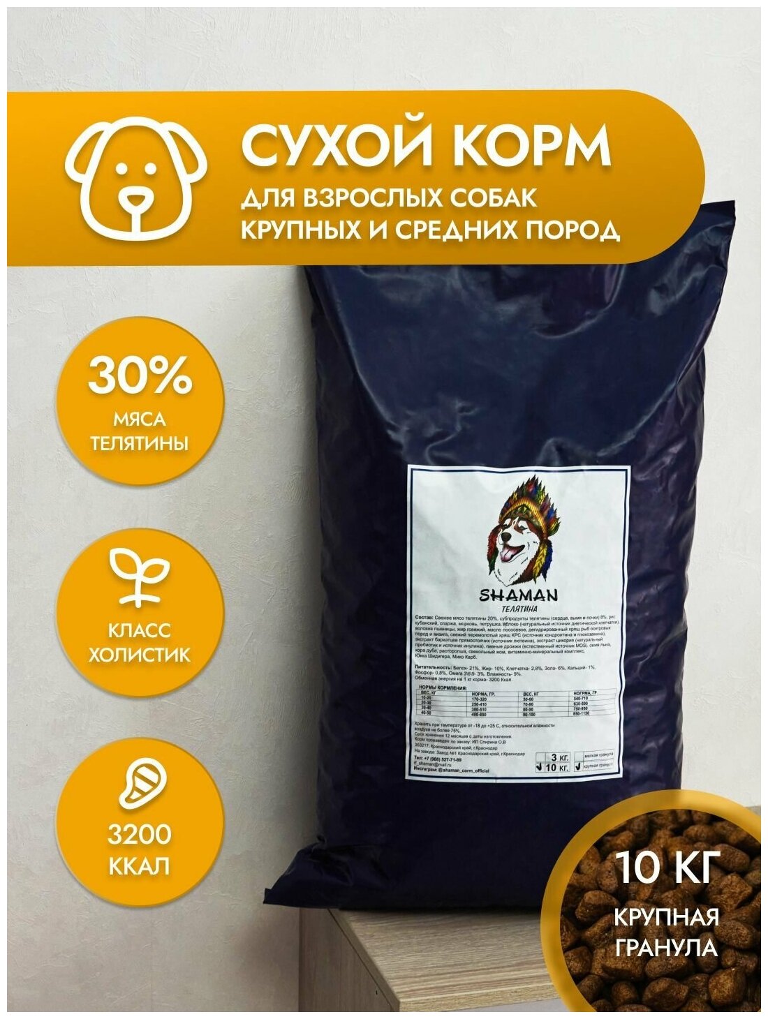 Сухой корм для собак «Shaman» Телятина, Класс Холистик (Holistic), крупные гранулы, для взрослых собак, крупных пород, 10 кг: сравнение цен, характеристики, фото, актуальное наличие и цены.