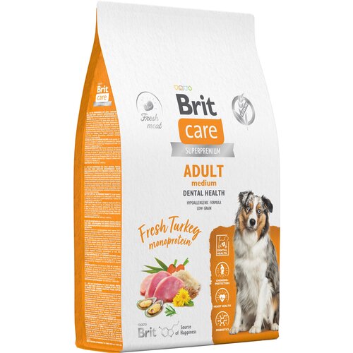 Полнорационный сухой корм суперпремиум-класса с индейкой для взрослых собак средних пород. Здоровые зубы.