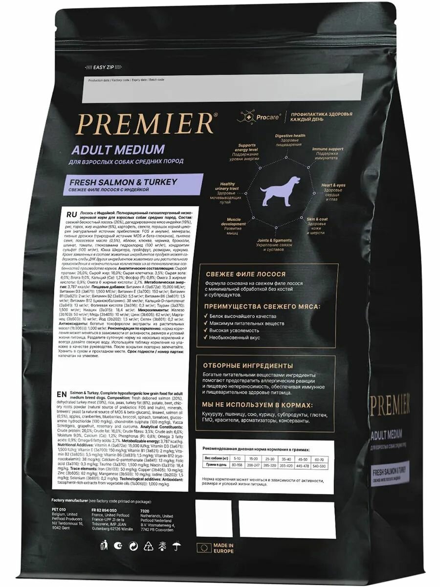 Купить Сухой корм для собак средних пород Premier свежее филе лосося и индейка,1 кг с доставкой по всей России. Сухой корм для собак средних пород Premier свежее филе лосося и индейка,1 кг: сравнение цен, характеристики, фото, актуальное наличие и цены.