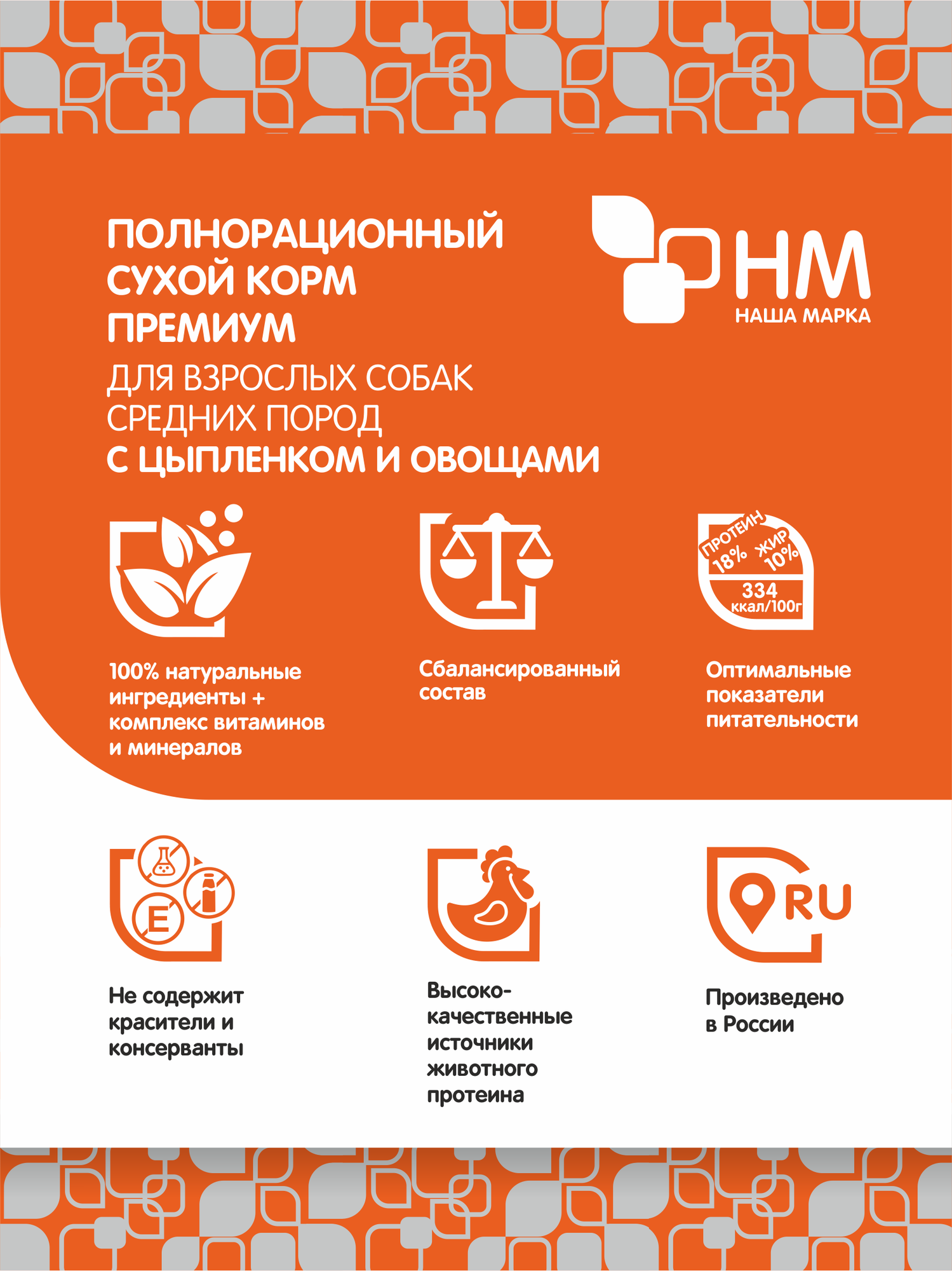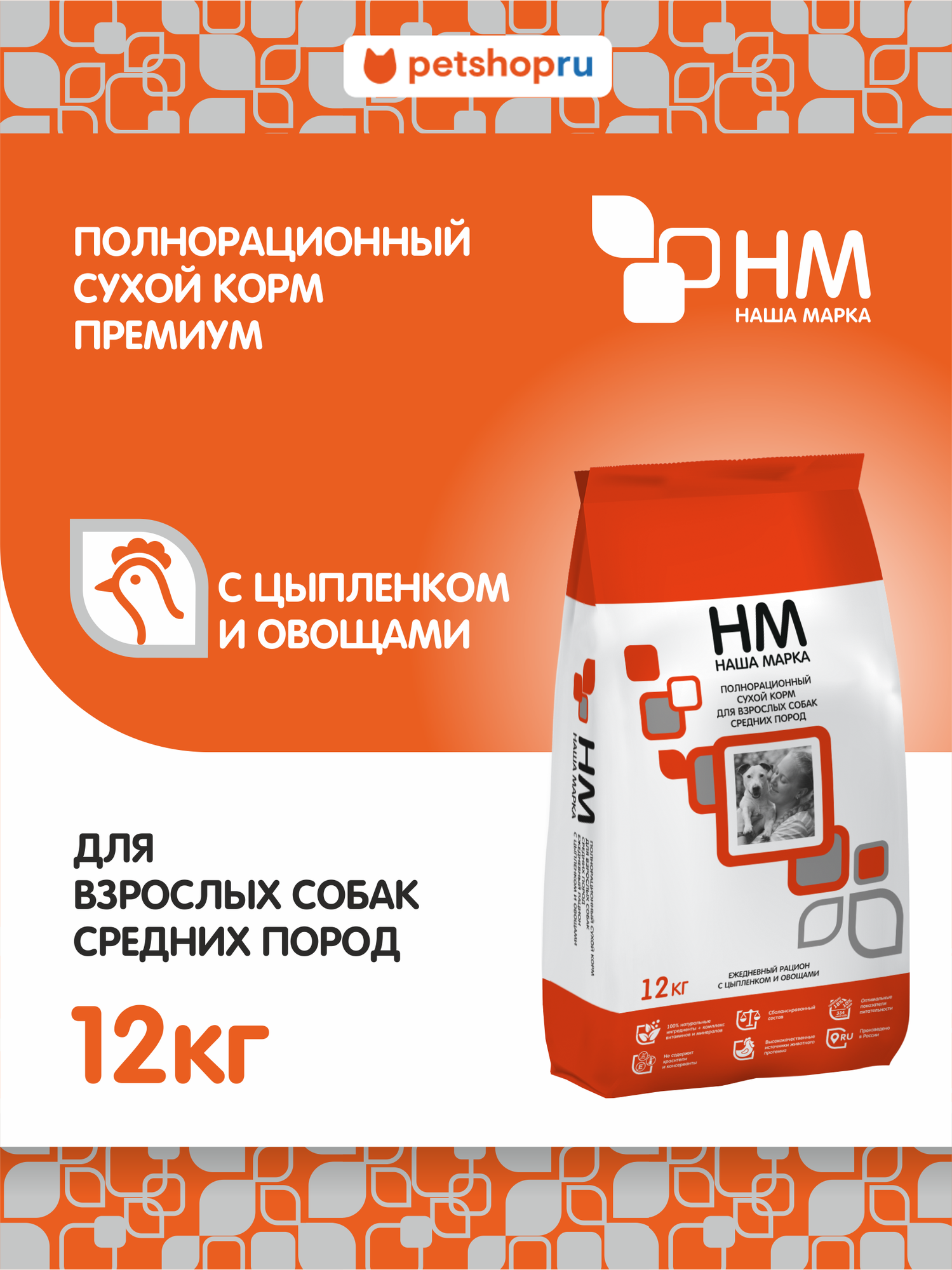 Корм сухой для собак средних пород «Наша Марка», с цыпленком и овощами, 12 кг: сравнение цен, характеристики, фото, актуальное наличие и цены.