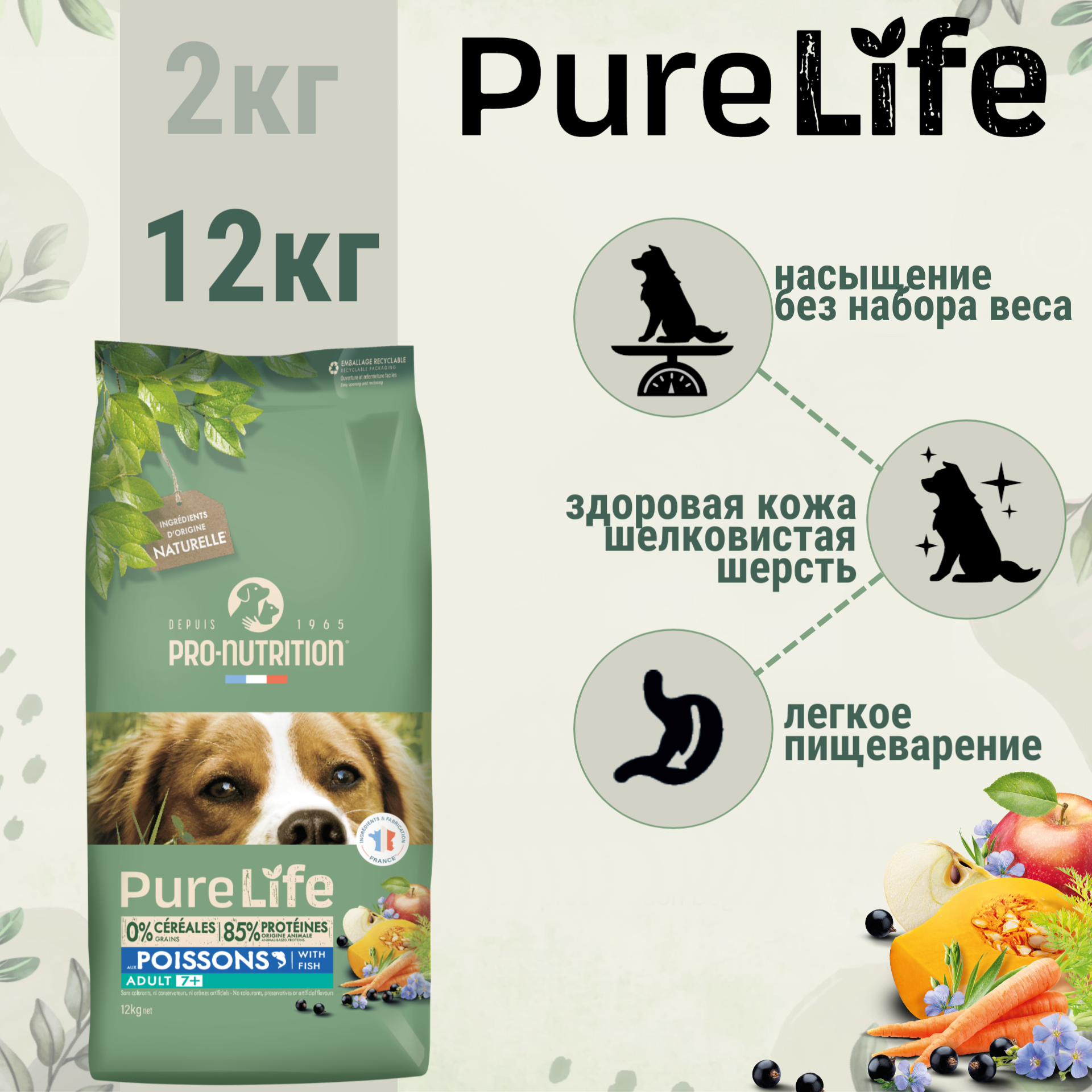 Сухой корм для собак Pro-Nutrition Flatazor Pure Life Adult 7+ (12 кг) – это высококачественный беззерновой корм для собак всех пород старше 7 лет, разработанный во Франции. Он подходит для пожилых собак с чувствительным пищеварением и особыми потребностями в здоровье кожи и блеска шерсти, костей и суставов, а также для склонности к избыточному весу.