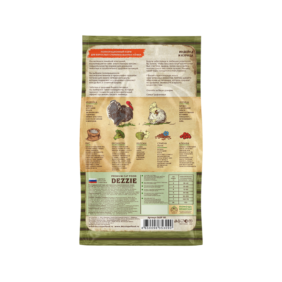 Dezzie Sterilized Cat сухой корм для взрослых стерилизованных кошек с курицей и индейкой — 10 кг: сравнение цен, характеристики, фото, актуальное наличие и цены.