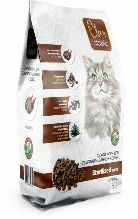 Купить CLAN CLASSIC STERILIZED 30/14 для взрослых кастрированных котов и стерилизованных кошек с индейкой (3 кг) с доставкой по всей России. CLAN CLASSIC STERILIZED 30/14 для взрослых кастрированных котов и стерилизованных кошек с индейкой (3 кг): сравнение цен, характеристики, фото, актуальное наличие и цены.