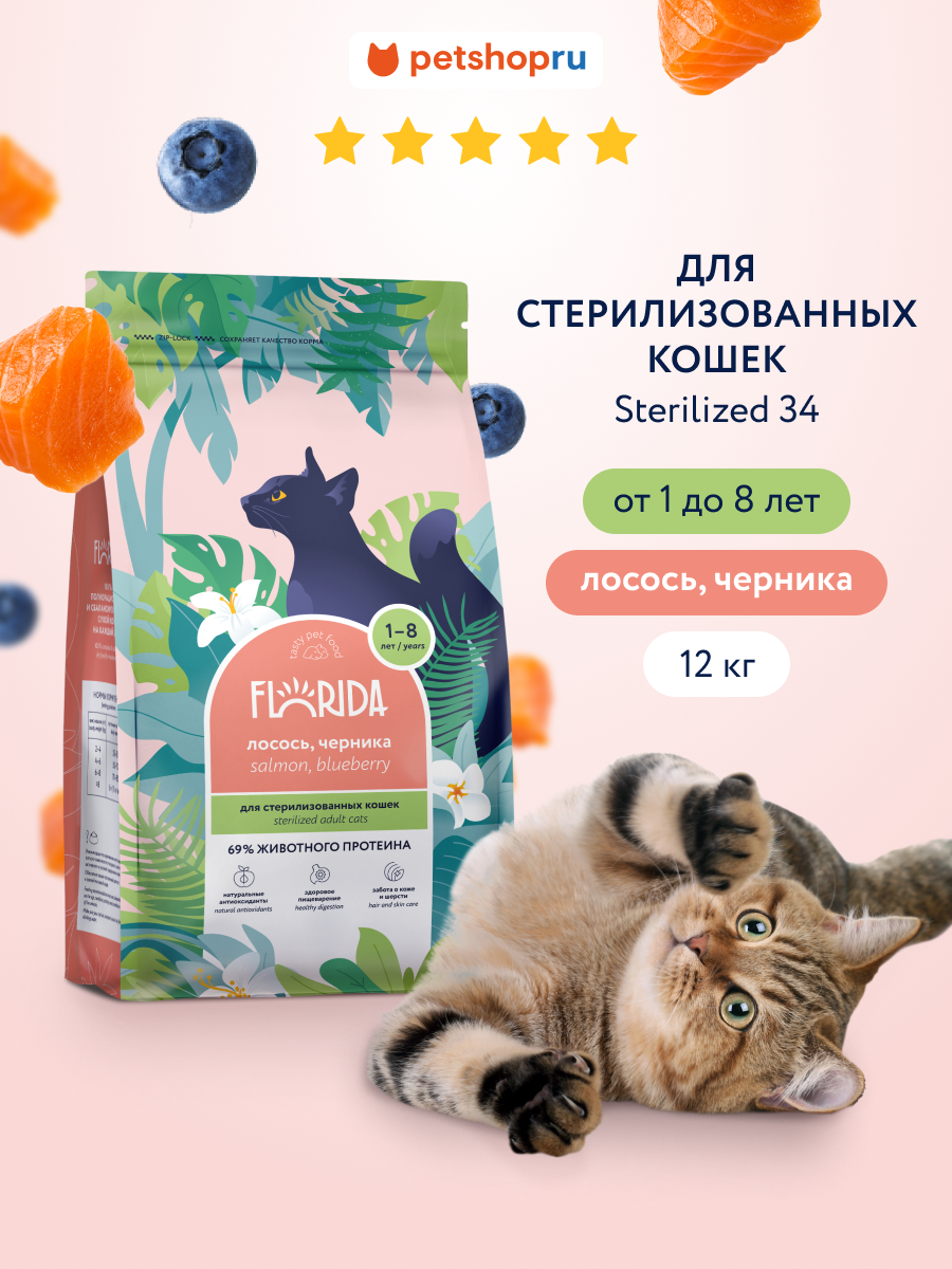 Купить FLORIDA Сухой корм для стерилизованных кошек с лососем и черникой, 12 кг с доставкой по всей России. FLORIDA Сухой корм для стерилизованных кошек с лососем и черникой, 12 кг: сравнение цен, характеристики, фото, актуальное наличие и цены.
