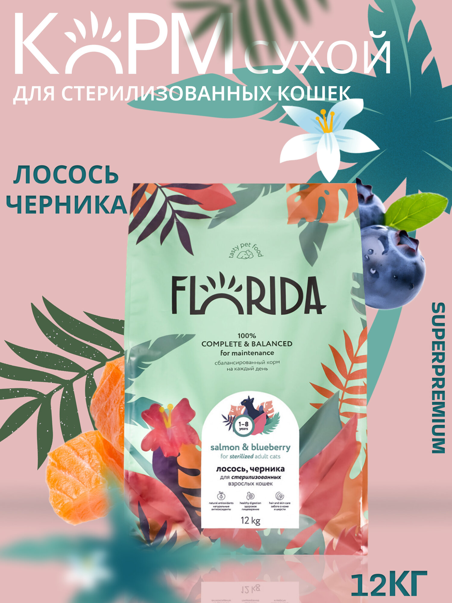 Купить Florida Salmon&Blueberry Сухой корм для стерилизованных кошек Лосось/Черника 12кг с доставкой по всей России. Florida Salmon&Blueberry Сухой корм для стерилизованных кошек Лосось/Черника 12кг: сравнение цен, характеристики, фото, актуальное наличие и цены.