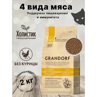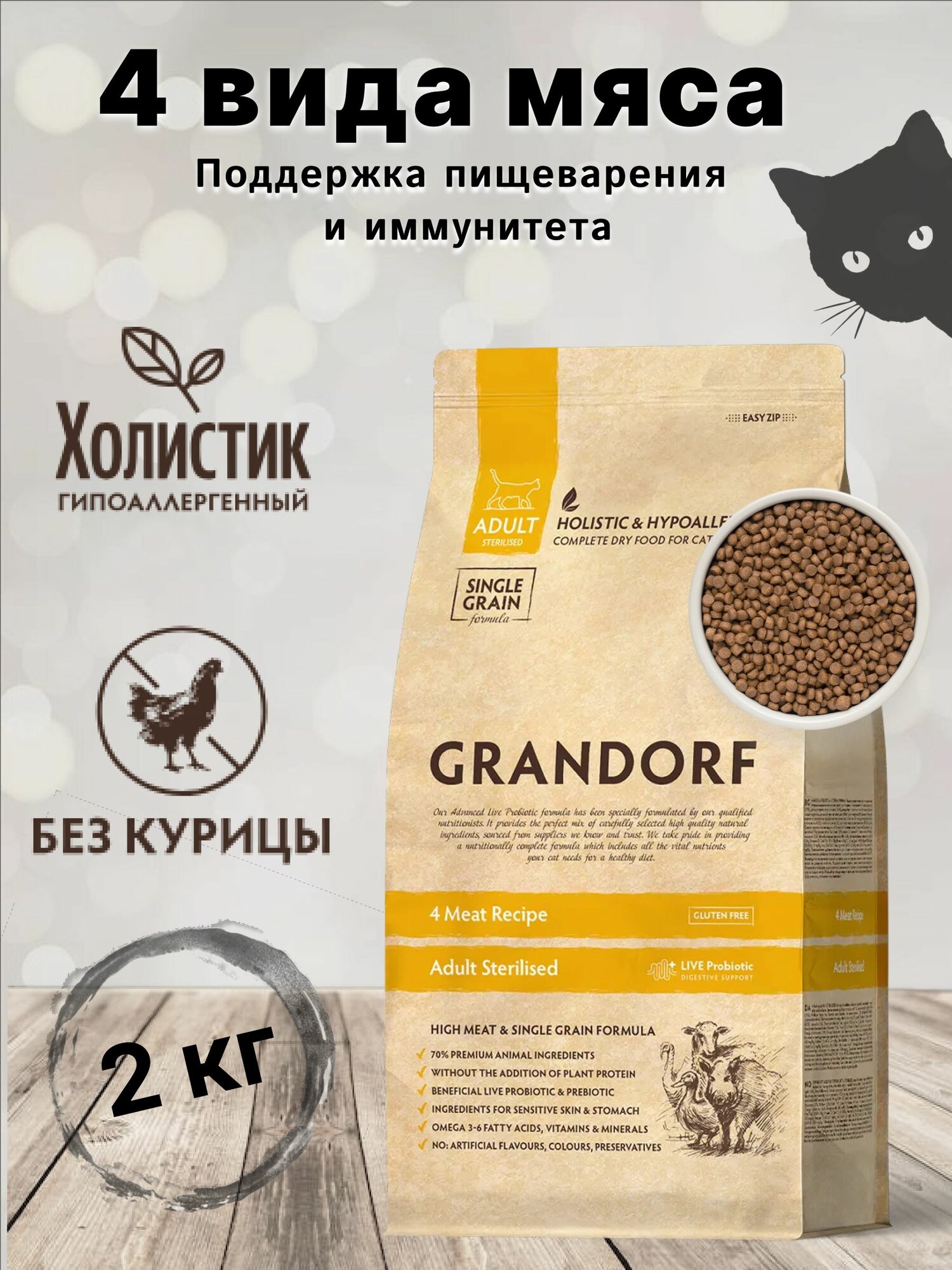 Корм для кошек GRANDORF 4 Мяса Sterilised 2кг. Для взрослых стерилизованных или пожилых кошек от 1 года. С пробиотиками: сравнение цен, характеристики, фото, актуальное наличие и цены.