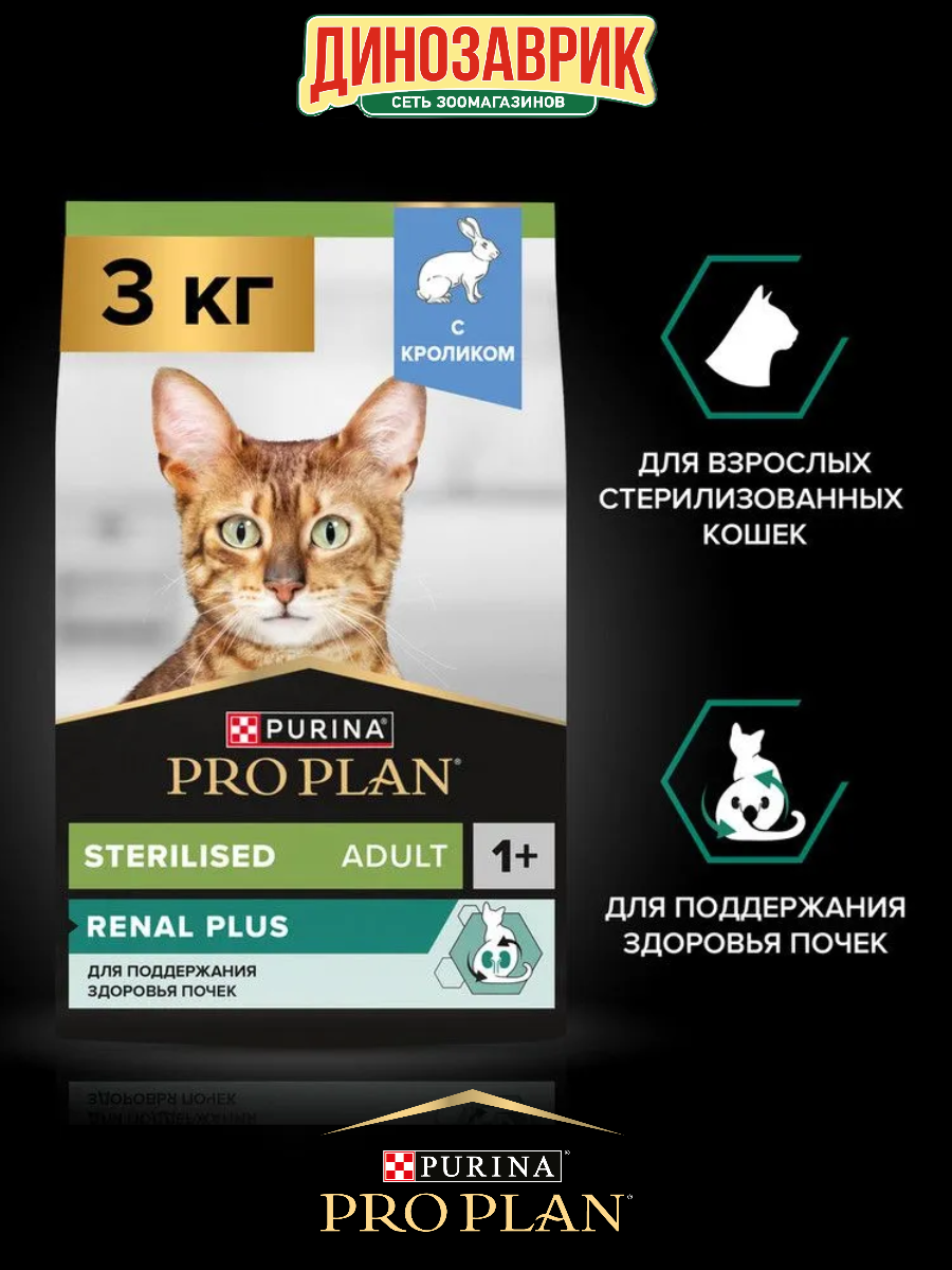 Купить Сухой корм PRO PLAN Sterilised Adult RENAL PLUS для стерилизованных кошек, с кроликом, 3 кг с доставкой по всей России. Сухой корм PRO PLAN Sterilised Adult RENAL PLUS для стерилизованных кошек, с кроликом, 3 кг: сравнение цен, характеристики, фото, актуальное наличие и цены.