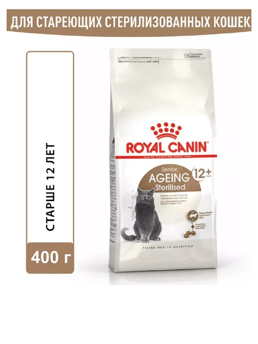 Корм сухой ROYAL CANIN «Ageing Sterelised 12+» для стерелизованных кошек старше 12 лет 400 г: сравнение цен, характеристики, фото, актуальное наличие и цены.