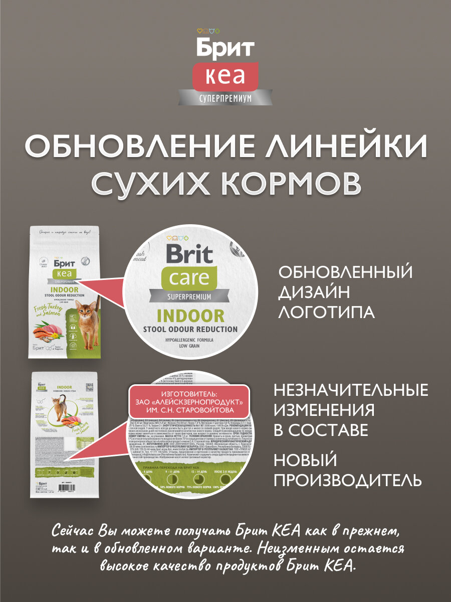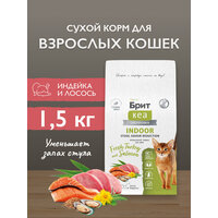 Купить Сухой корм для взрослых домашних кошек супер-премиум с индейкой и лососем «Cat Indoor Stool Odour Reduction»BRIT CARE 1,5 кг с доставкой по всей России.