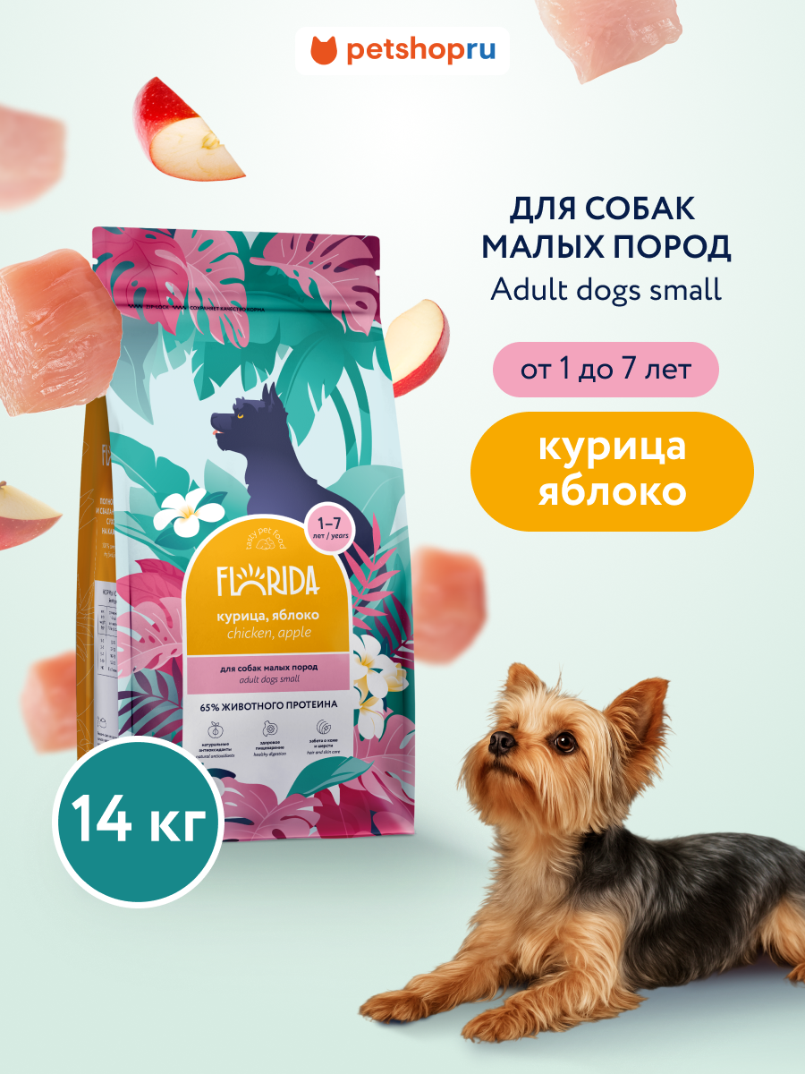 Купить FLORIDA Сухой корм для взрослых собак малых пород с курицей и яблоком, Mini Adult Chicken, 14 кг с доставкой по всей России.