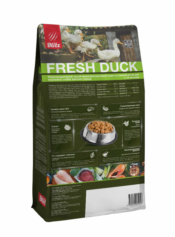 Blitz Holistic Fresh Duck Сухой монопротеиновый корм для взрослых собак мелких пород с чувствительным пищеварением, 8 кг: сравнение цен, характеристики, фото, актуальное наличие и цены.