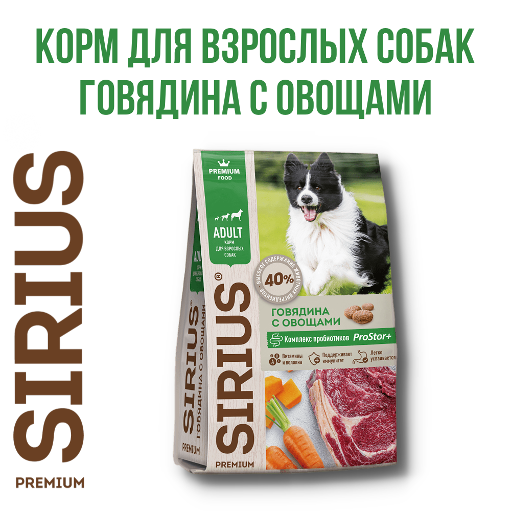 SIRIUS — сухой корм премиум-класса для полноценного ежедневного рациона взрослых собак. Высокое содержание мясных ингредиентов обеспечивает оптимальный уровень белка и укрепляет мышцы. Баланс витаминов и комплекса пробиотиков 4-го поколения PROSTOR+ нормализует пищеварение и укрепляет иммунитет. Омега 3 и Омега 6 способствуют поддержанию здоровья сердца, мозга, нервной системы, здоровья кожи и красоты шерсти.