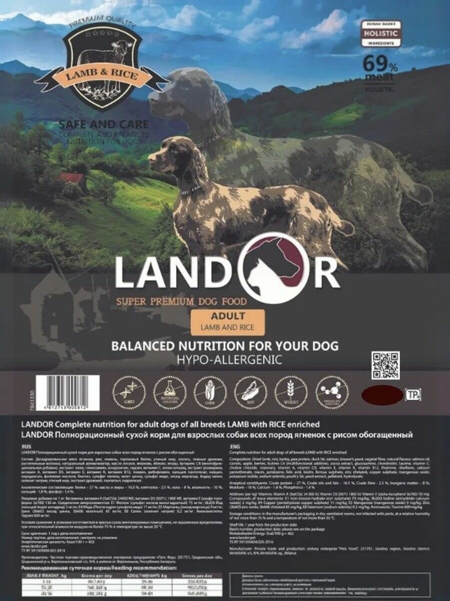 Купить Сухой корм для взрослых собак всех пород Landor ягненок с рисом 3 кг с доставкой по всей России.