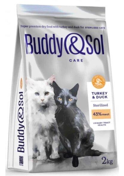 Купить Buddy&Sol Care Sterilized сухой корм для взрослых стерилизованных кошек с индейкой и уткой — 2 кг с доставкой по всей России.
