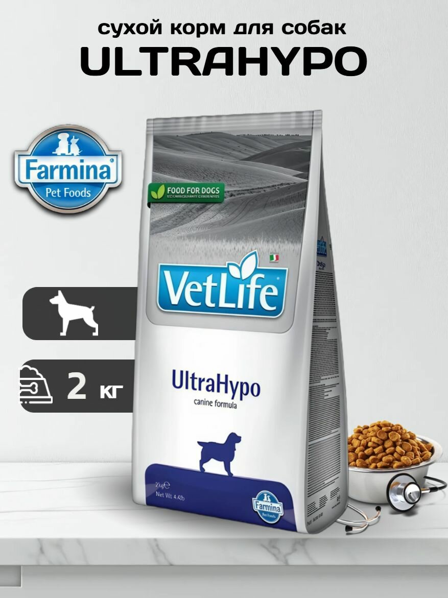 Купить Сухой корм Farmina Фармина Vet Life UltraHypo Dog для собак — 2 кг с доставкой по всей России. Сухой корм Farmina Фармина Vet Life UltraHypo Dog для собак — 2 кг: сравнение цен, характеристики, фото, актуальное наличие и цены.