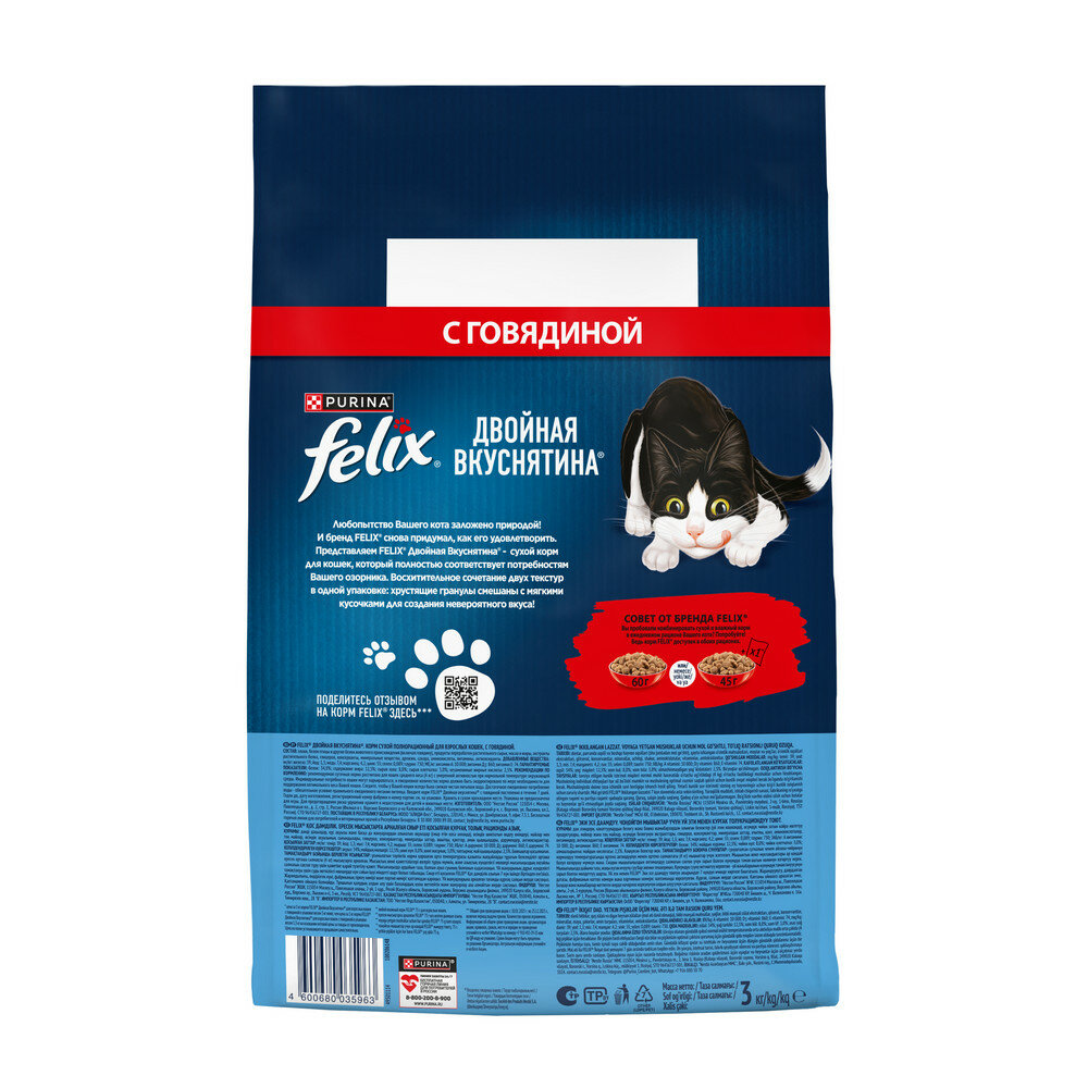 Купить Сухой корм Felix Двойная вкуснятина для кошек Говядина, 3 кг. с доставкой по всей России. Сухой корм Felix Двойная вкуснятина для кошек Говядина, 3 кг.: сравнение цен, характеристики, фото, актуальное наличие и цены.