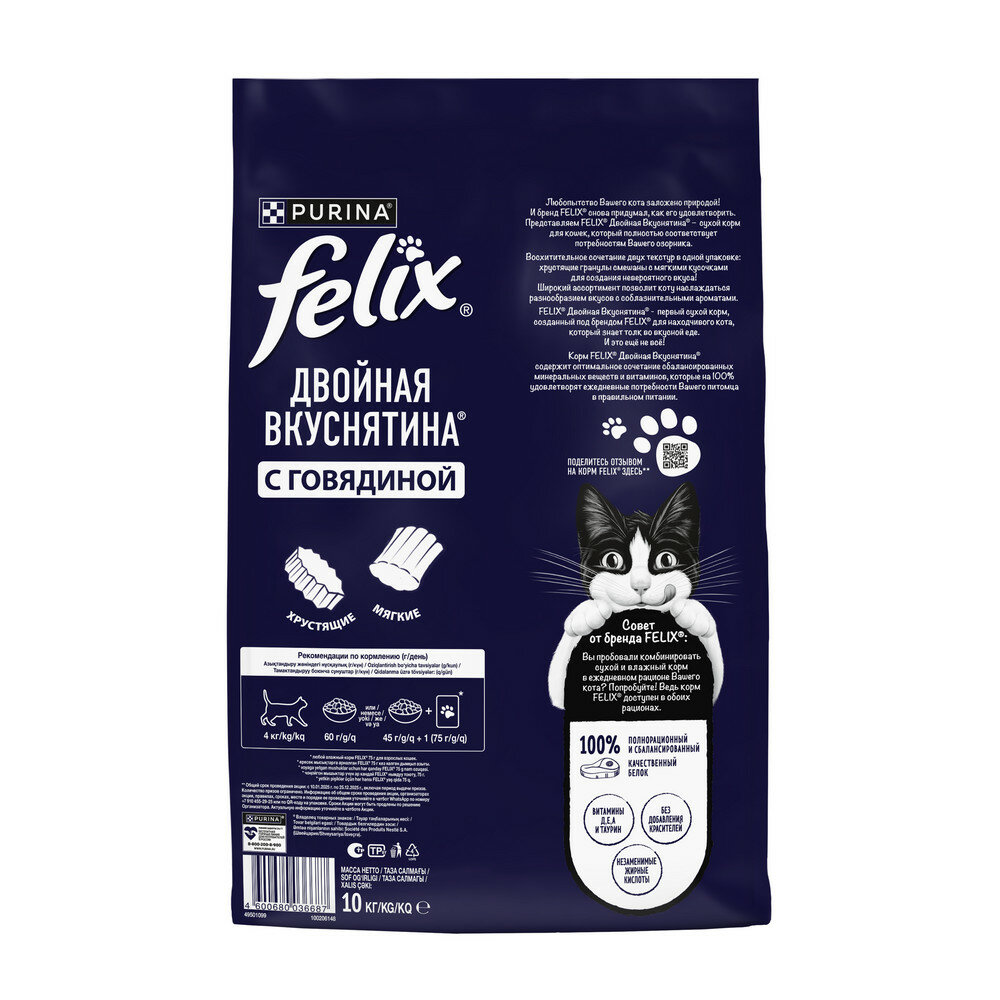 Купить Сухой корм Felix Двойная вкуснятина для кошек Говядина, 10 кг. с доставкой по всей России. Сухой корм Felix Двойная вкуснятина для кошек Говядина, 10 кг.: сравнение цен, характеристики, фото, актуальное наличие и цены.