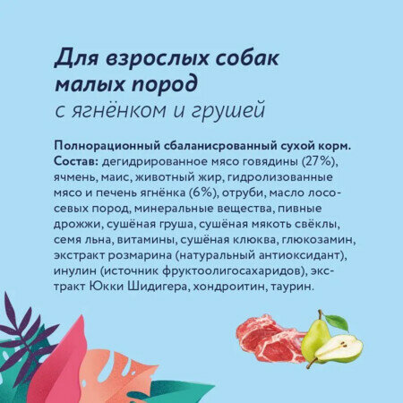 FLORIDA 14 кг сухой корм для взрослых собак малых пород с ягнёнком и грушей: сравнение цен, характеристики, фото, актуальное наличие и цены.