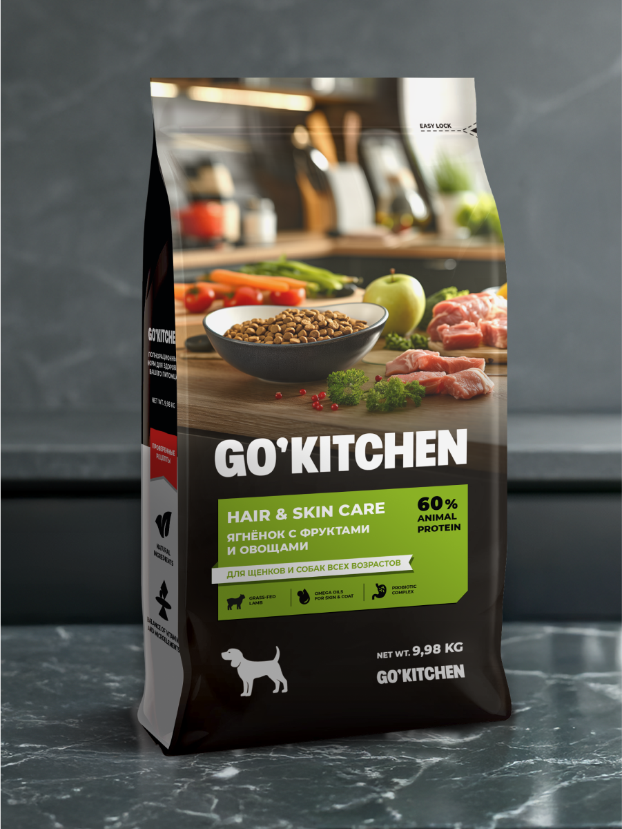 Сухой корм "ГО Кичен" ягненок с фруктами и овощами, полнорационный сухой корм для щенков и собак всех возрастов с ягненком