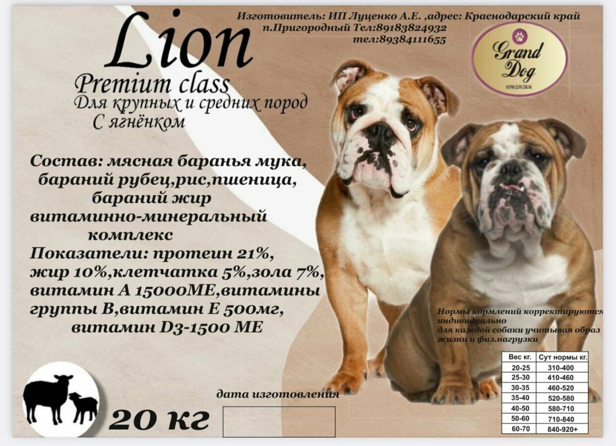 Сухой корм Grand Dog Lion с ягненком для собак крупных и средних пород 20 кг: сравнение цен, характеристики, фото, актуальное наличие и цены.
