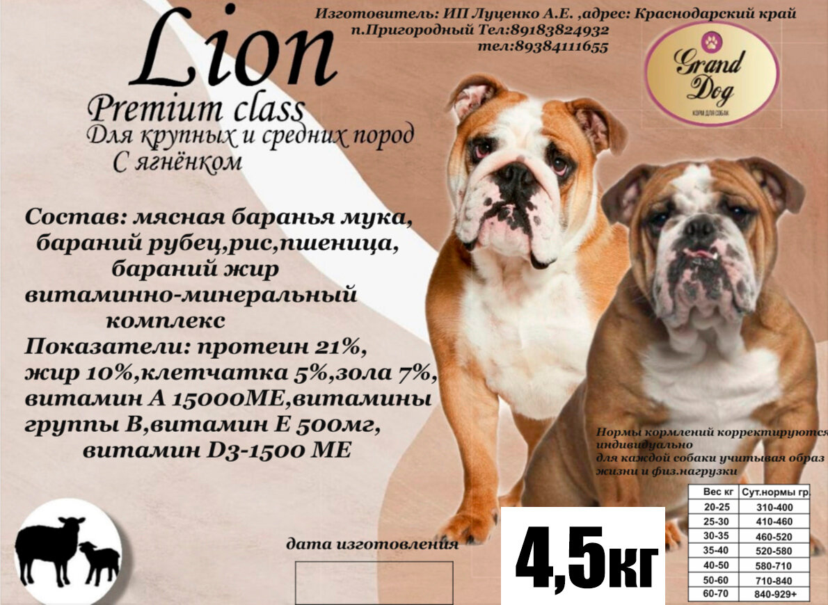 Сухой корм Grand Dog Lion с ягненком для собак крупных и средних пород 4,5 кг: сравнение цен, характеристики, фото, актуальное наличие и цены.