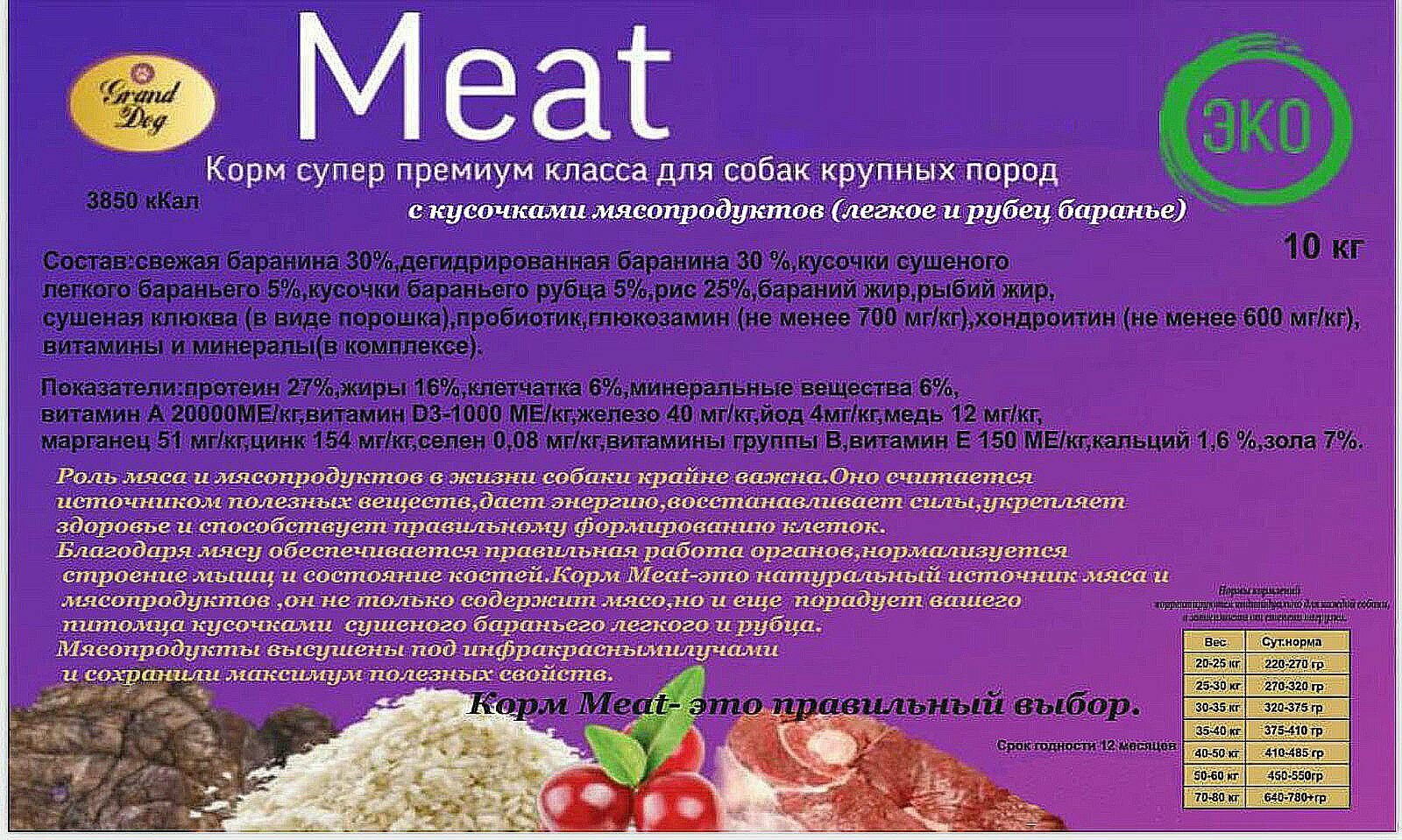 | Особые потребности | гипоаллергенный, для активных животных, для беременных/кормящих, для здоровья кожи и блеска шерсти, для здоровья костей и суставов, для определенных пород, при проблемах с почками, при склонности к избыточному весу, при чувствительном пищеварении |