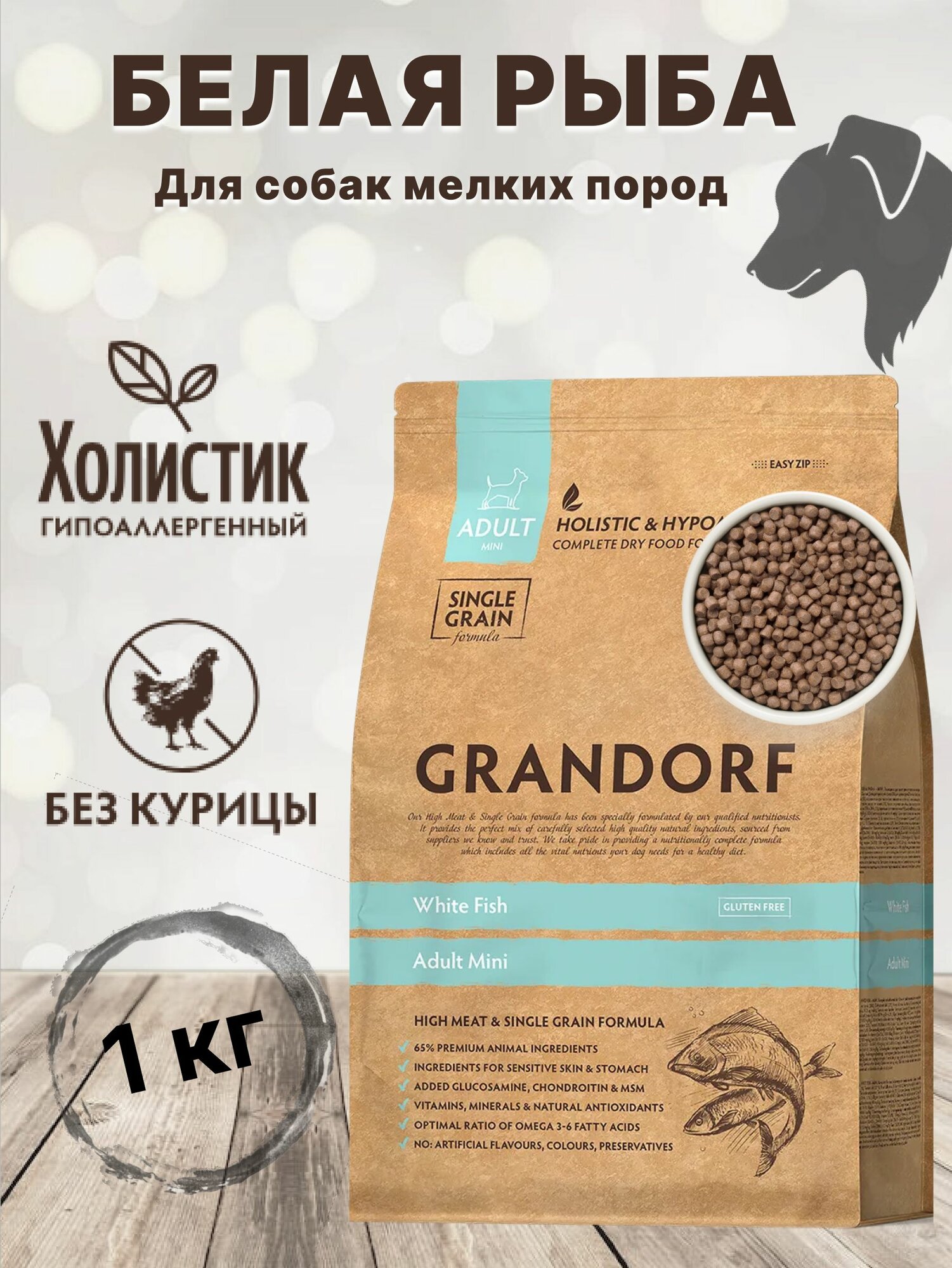 Сухой корм Grandorf Белая рыба мини 1кг, для взрослых собак мелких пород от 1 года.: сравнение цен, характеристики, фото, актуальное наличие и цены.
