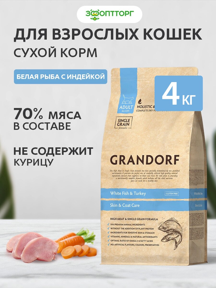 Сухой корм Grandorf Cat Skin & Coat Care для кошек Белая рыба и индейка, 2 кг х 2 шт.: сравнение цен, характеристики, фото, актуальное наличие и цены.