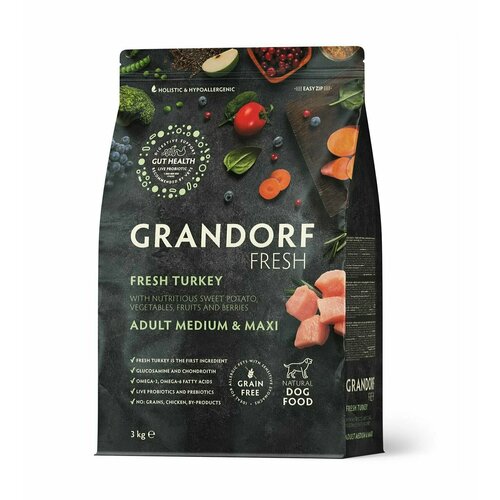Купить Сухой корм Grandorf Fresh для собак средних и крупных пород из свежего мяса индейки с бататом 3 кг с доставкой по всей России. Сухой корм Grandorf Fresh для собак средних и крупных пород из свежего мяса индейки с бататом 3 кг: сравнение цен, характеристики, фото, актуальное наличие и цены.