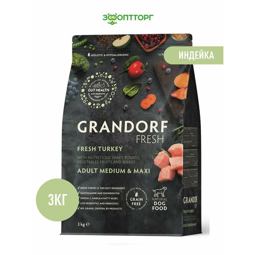 Купить Сухой корм Grandorf Fresh Dog Adult Medium&Maxi беззерновой для взрослых собак средних и крупных пород Индейка с бататом, 3 кг. с доставкой по всей России. Сухой корм Grandorf Fresh Dog Adult Medium&Maxi беззерновой для взрослых собак средних и крупных пород Индейка с бататом, 3 кг.: сравнение цен, характеристики, фото, актуальное наличие и цены.