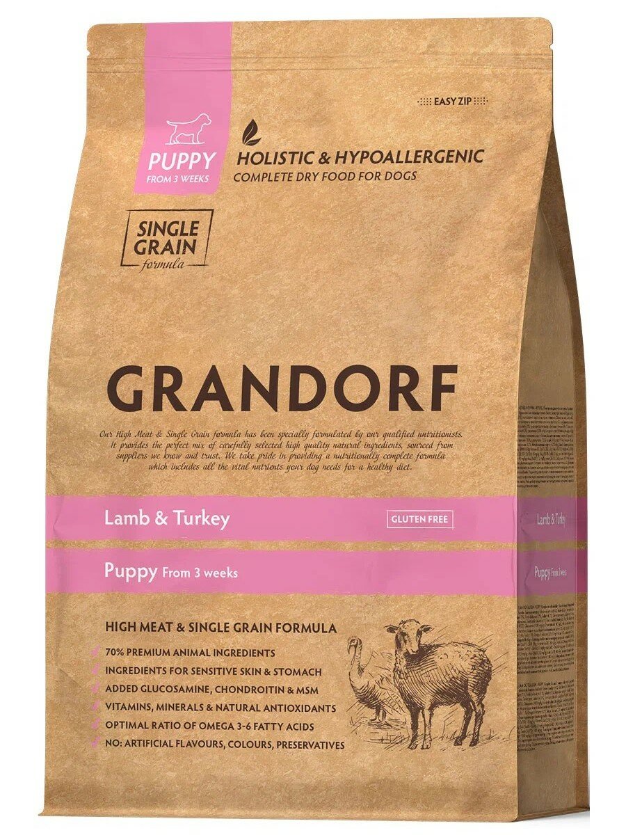 Купить Сухой корм Grandorf Puppy Lamb&Turkey для щенков с 3 недель, беременных и кормящих собак, ягненок с индейкой 3 кг с доставкой по всей России.