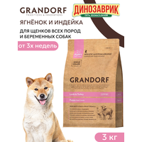 Сухой корм Grandorf Puppy Lamb&Turkey для щенков с 3 недель, беременных и кормящих собак, ягненок с индейкой 3 кг